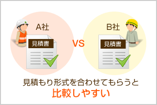 リフォームの相見積りを依頼する際には、各リフォーム業者に 見積書の形式を合わせてもらうと比較がしやすくなります。