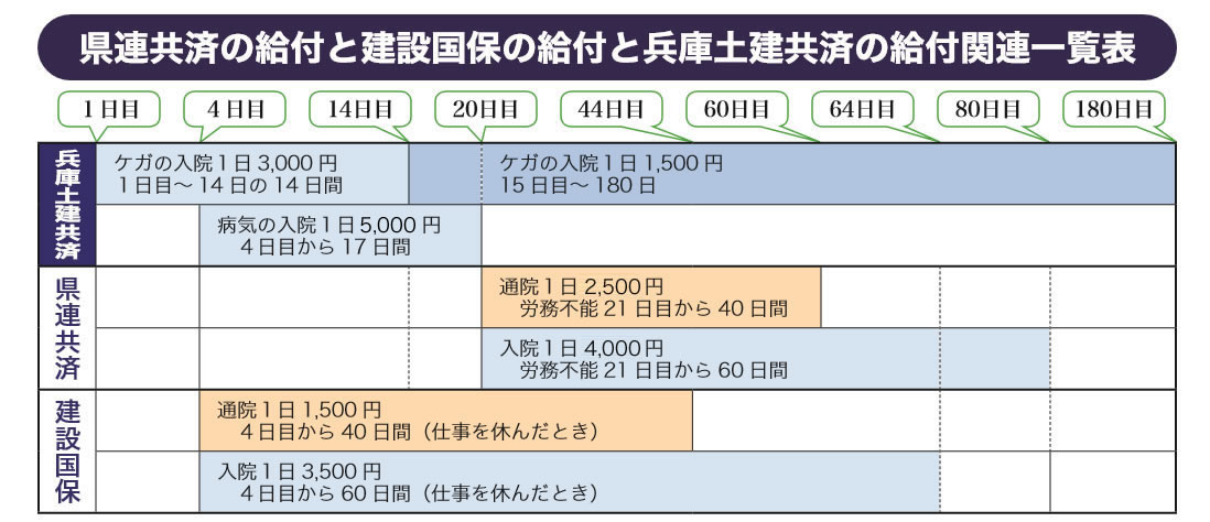 自己申告にて給付が受けられます。対象の事由が発生した際、所属支部事務所にて手続をしてください。 - 兵庫土建共済の給付内容