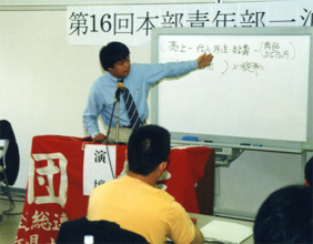 県下17の青年部から仲間が集まり、仕事のこと、青年部のことなどを話し合っています。